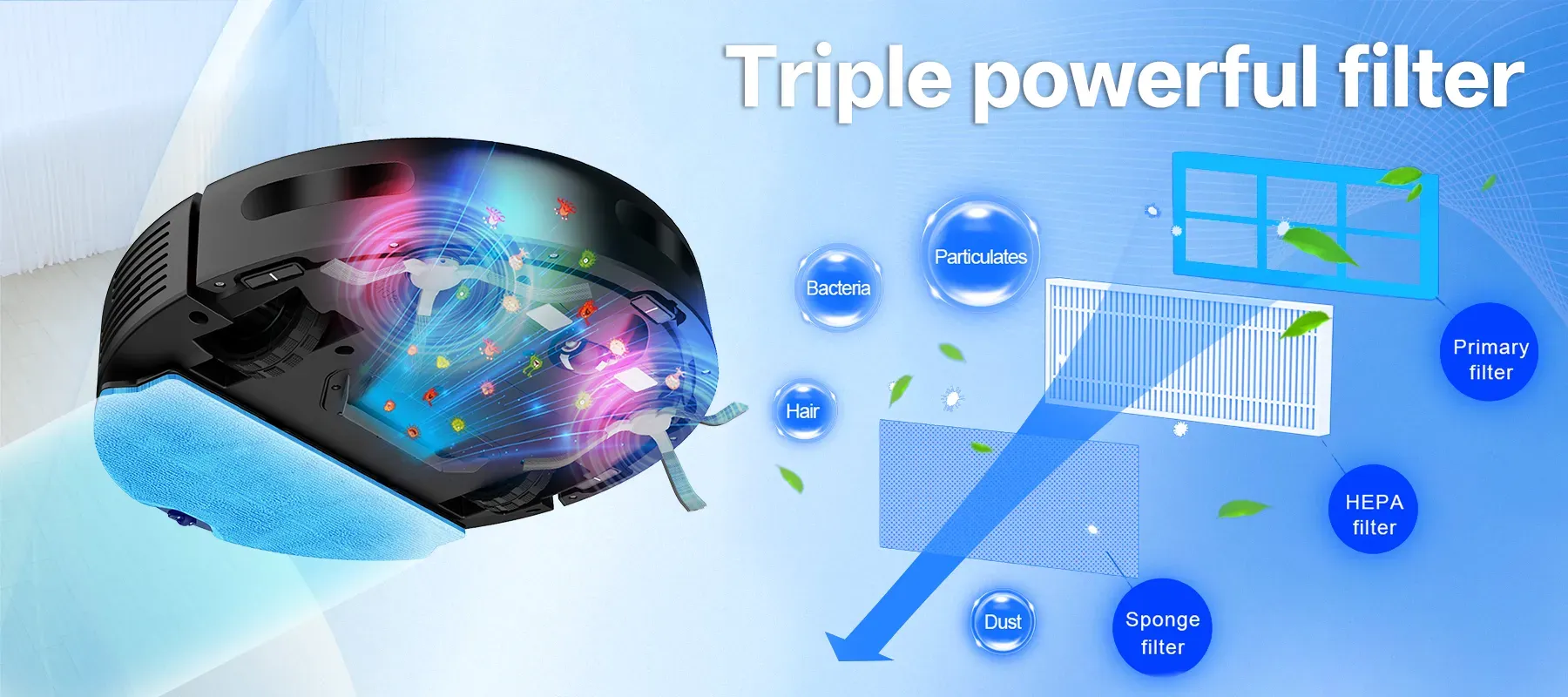 Tired of lingering dirt? 4000Pa Hurricane Suction thoroughly cleans dust, hair, and debris hidden deep in crevices and carpets. Say goodbye to repeated cleaning and hello to true cleanliness in just one go!